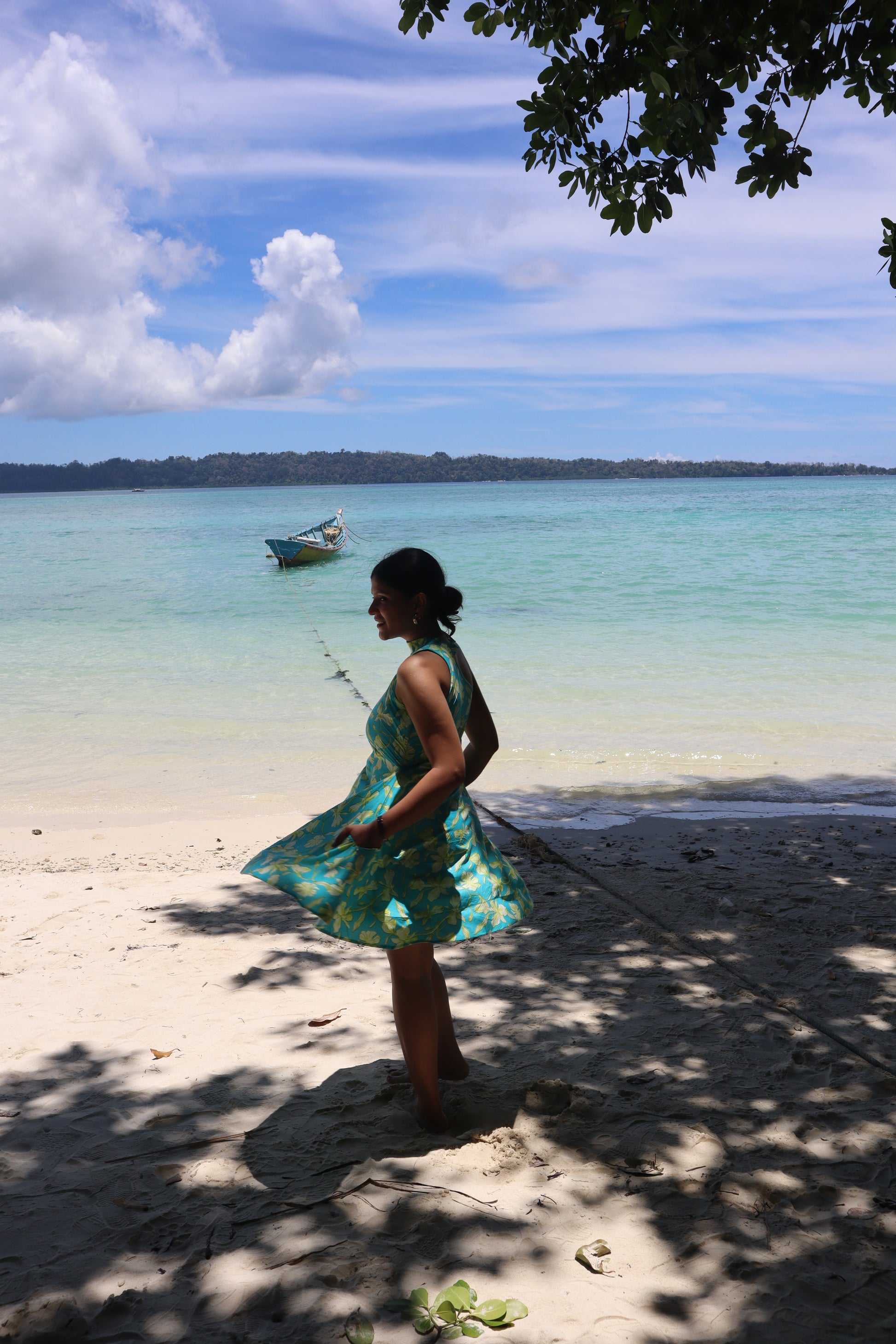 Bright, breezy, and brimming with joy — the Beachy Barbie dress is our playful ode to sun-soaked days by the sea. Inspired by the vibrant hues of Havelock Island’s coral gardens and turquoise waters, this cotton mini Hand Block printed dress features a flattering fit-and-flare silhouette with a halter neckline that ties effortlessly at the back.